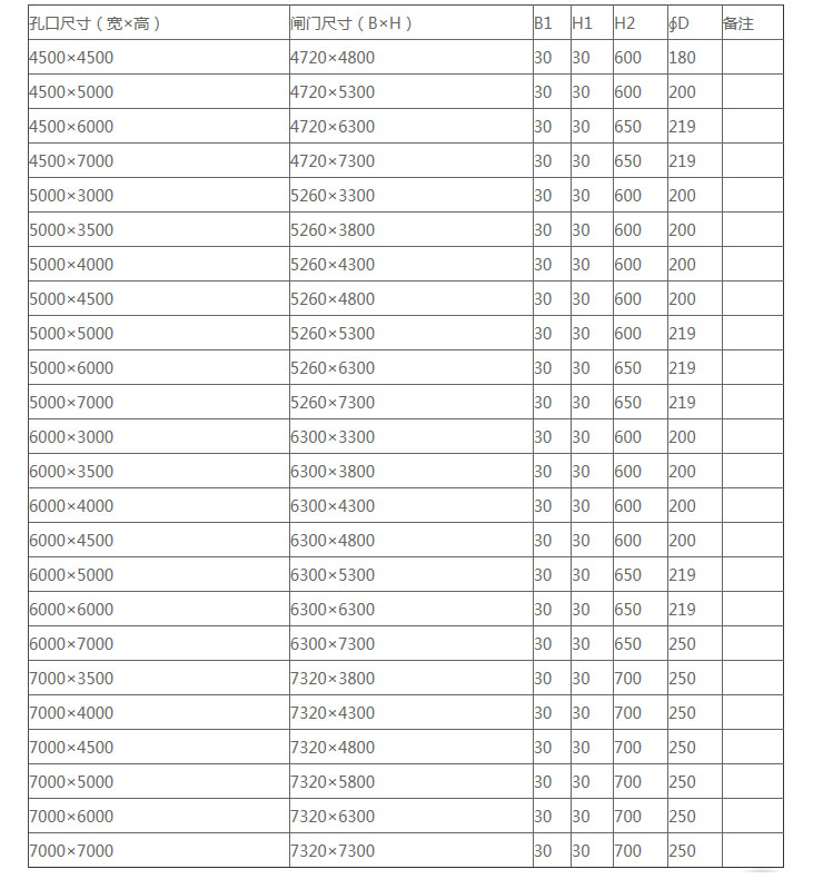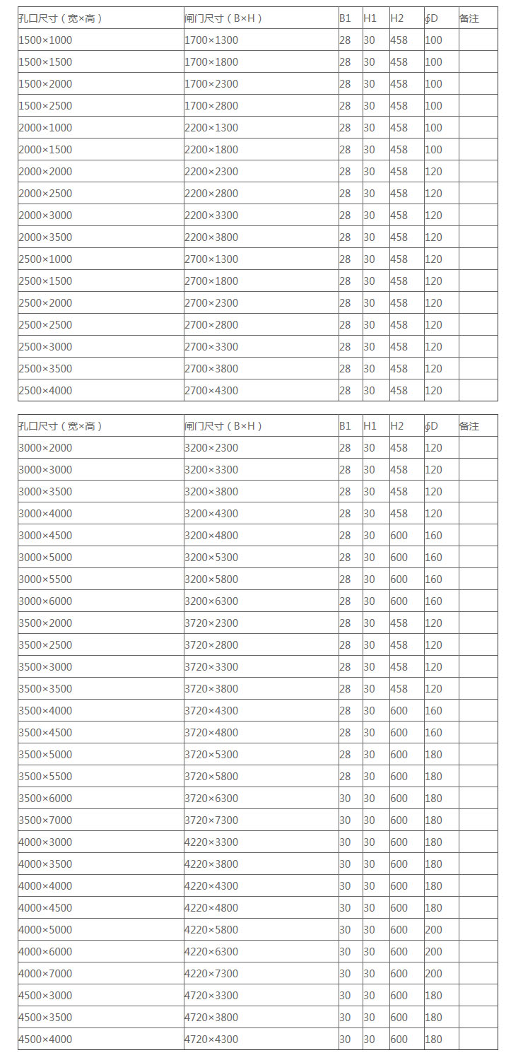 設(shè)計順序號 孔口尺寸(寬B*高H 單位mm) 平面滑動鋼閘門 |